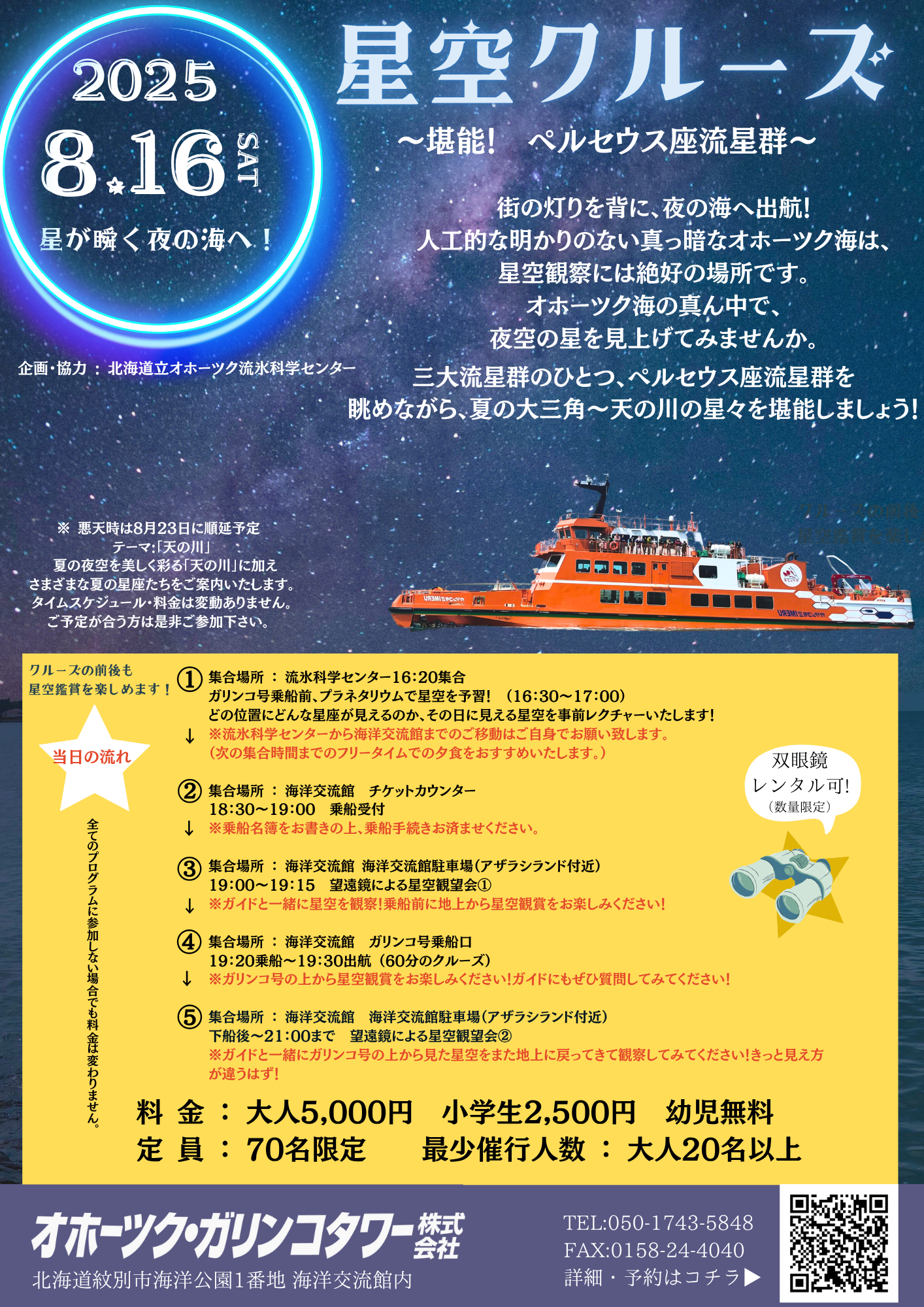 今年こそ海上で星を見よう!ということでオホーツク・ガリンコタワー㈱さん主催で、