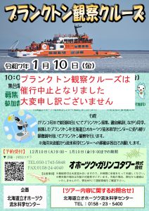 令和7年1月10日(金)に予定しておりました「プランクトン観察クルーズ」は催行中止となりました。