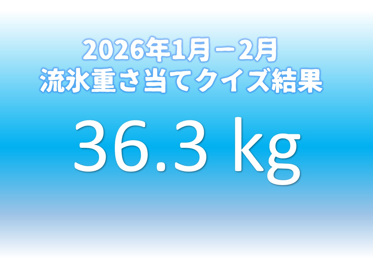 本日2月8日、10時30分より開催されました流氷重さ当てクイズ・公開計量会にて結果がでましたのでお伝えいたします。