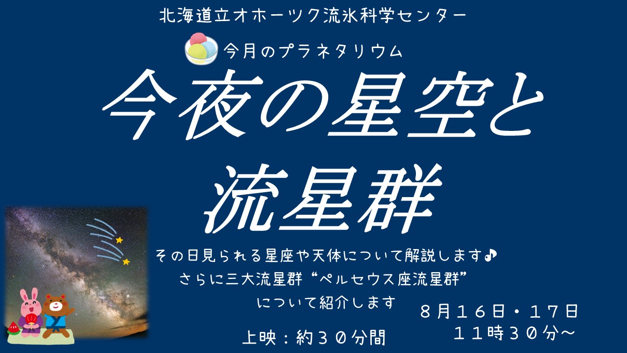 8月のプラネタリウムは夏休みスペシャル!ということで16日(土)と17日(日)に行います♪