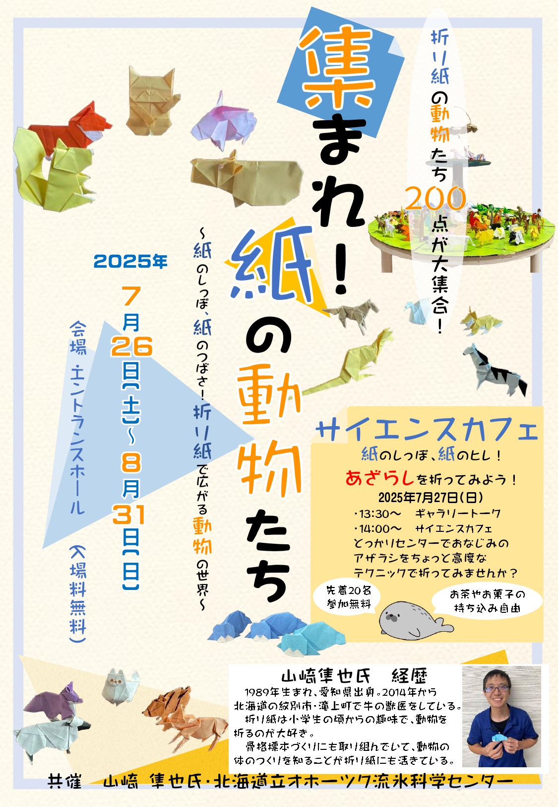 紋別市・滝上町で獣医師を勤める山崎隼也氏による折り紙展です。